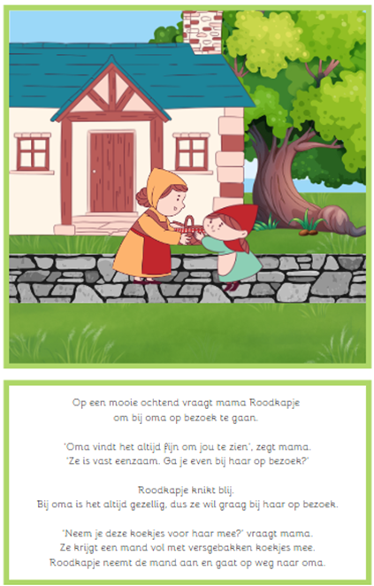 Dit verhaal is zeer goed te gebruiken in combinatie met de verhaalbegrip volgorde kaarten van Roodkapje!